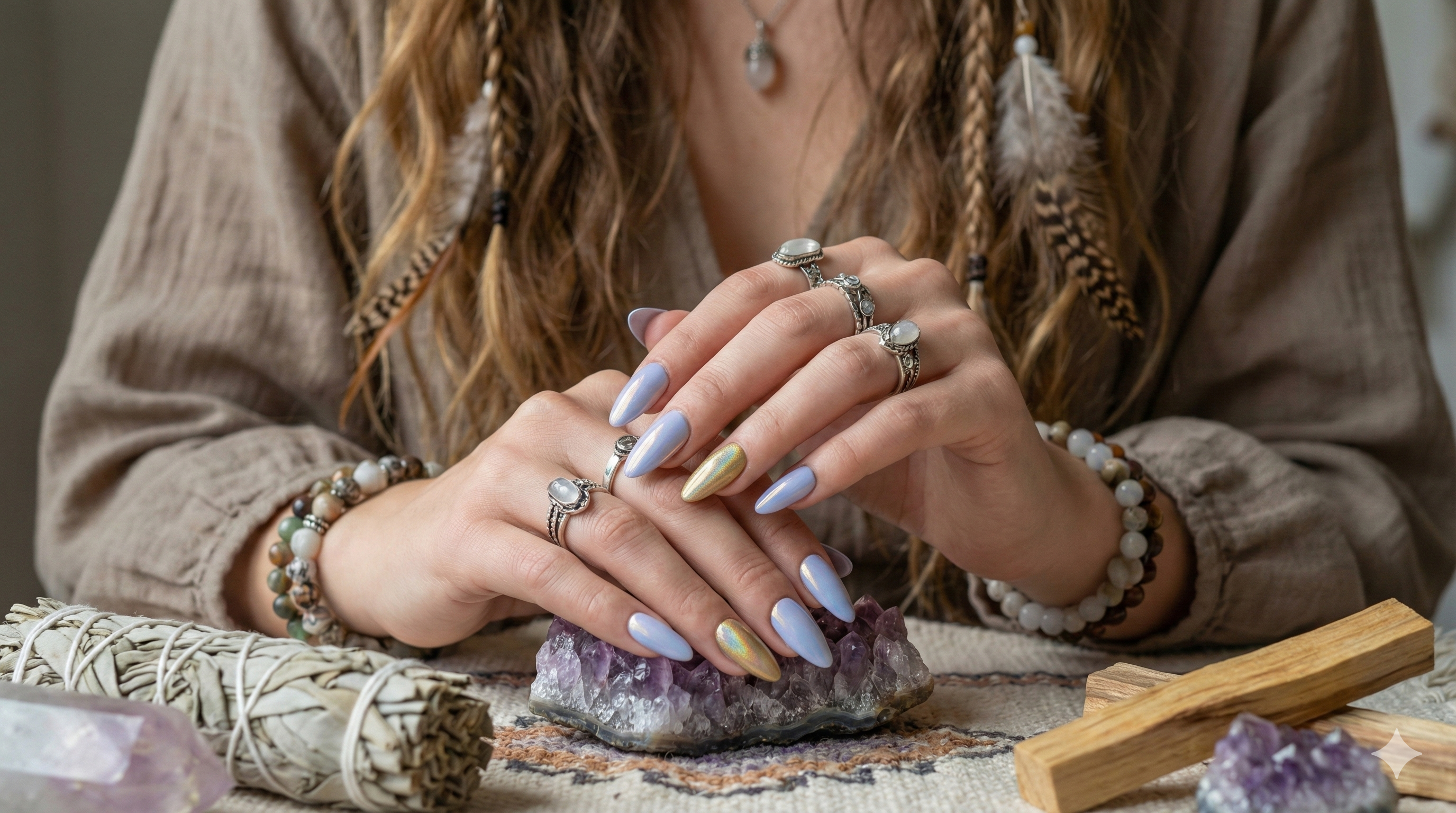 Handcrafted press-on nails designed to turn your beauty routine into a calming, intentional ritual.